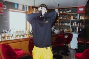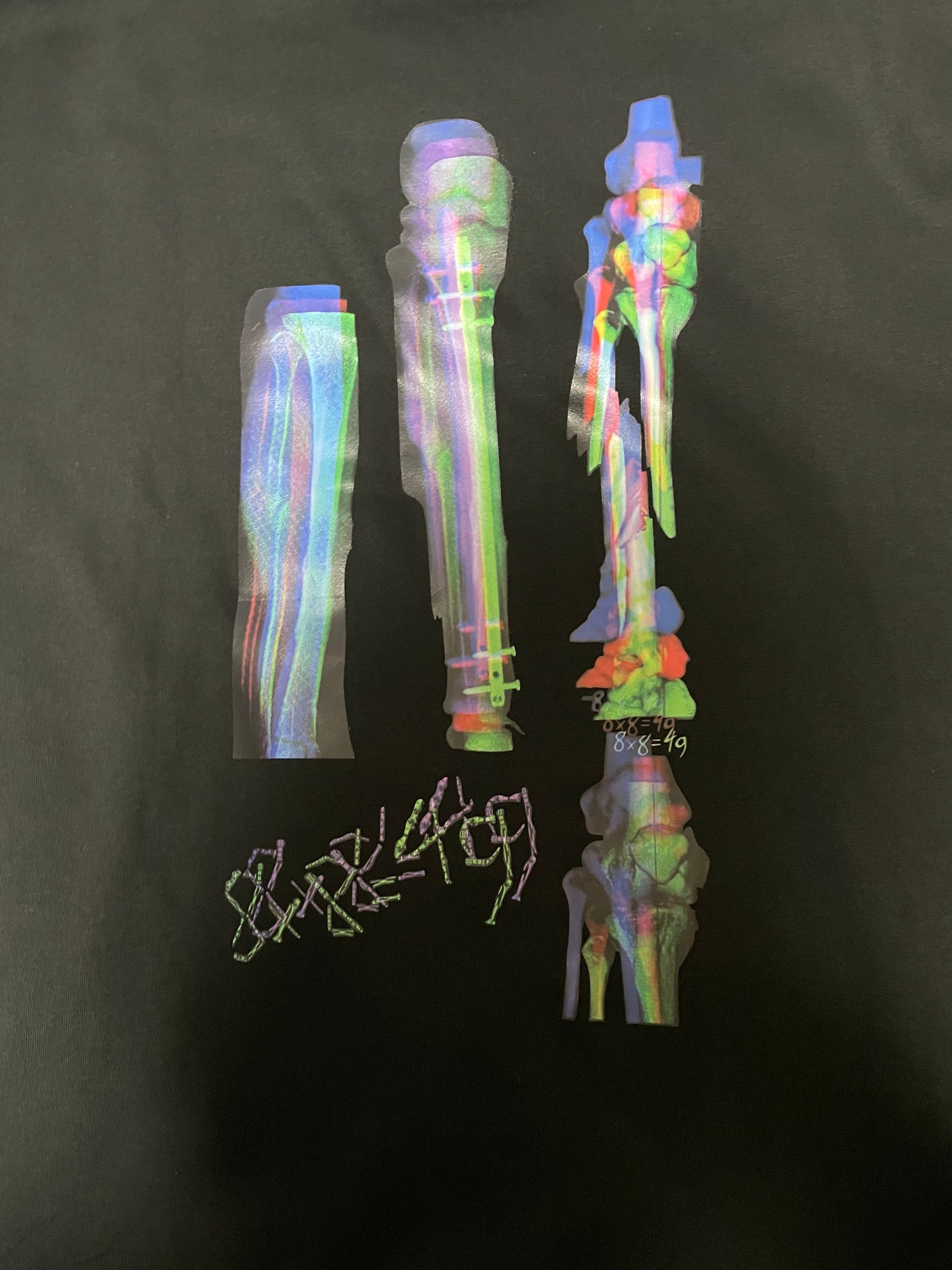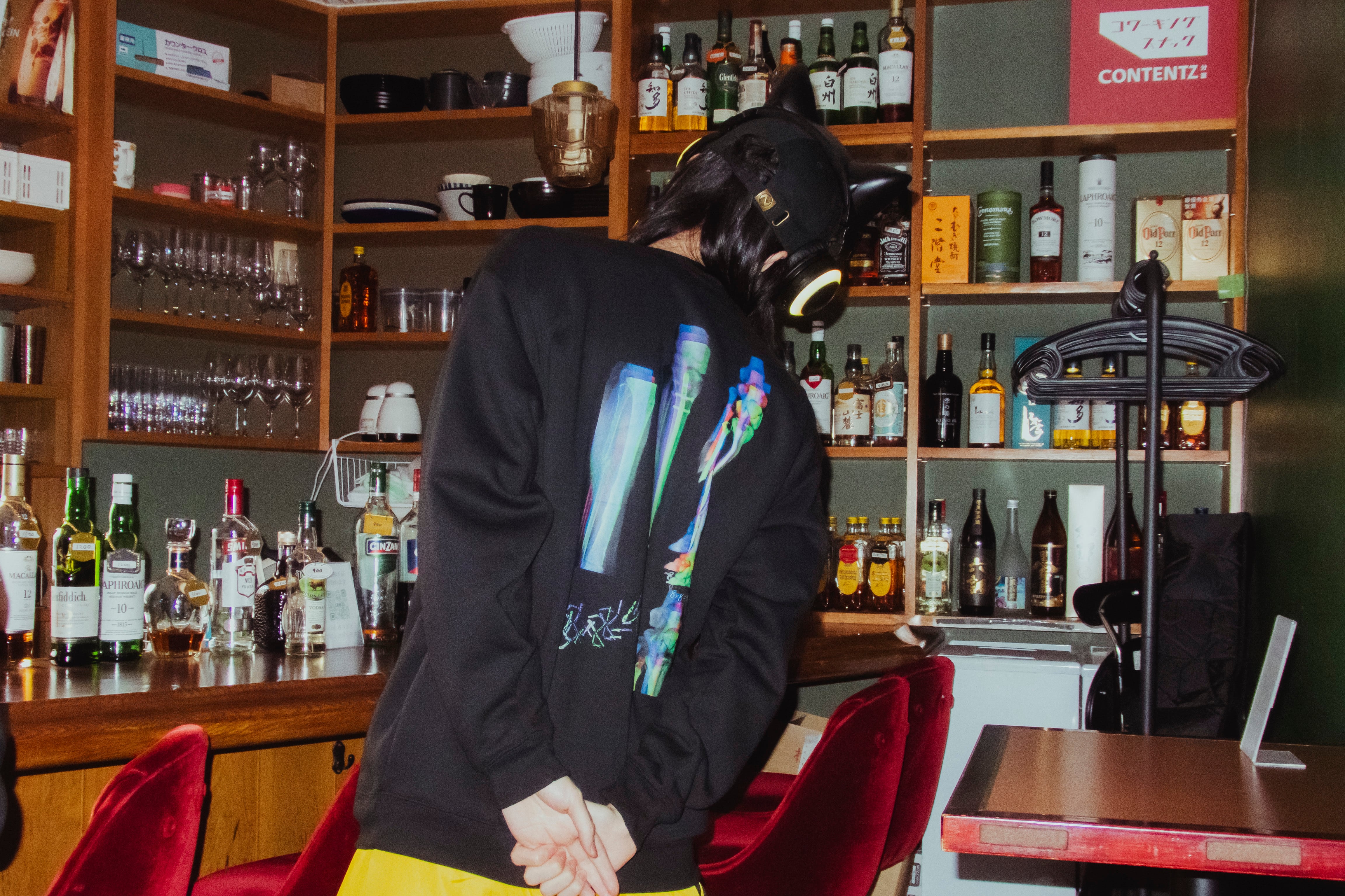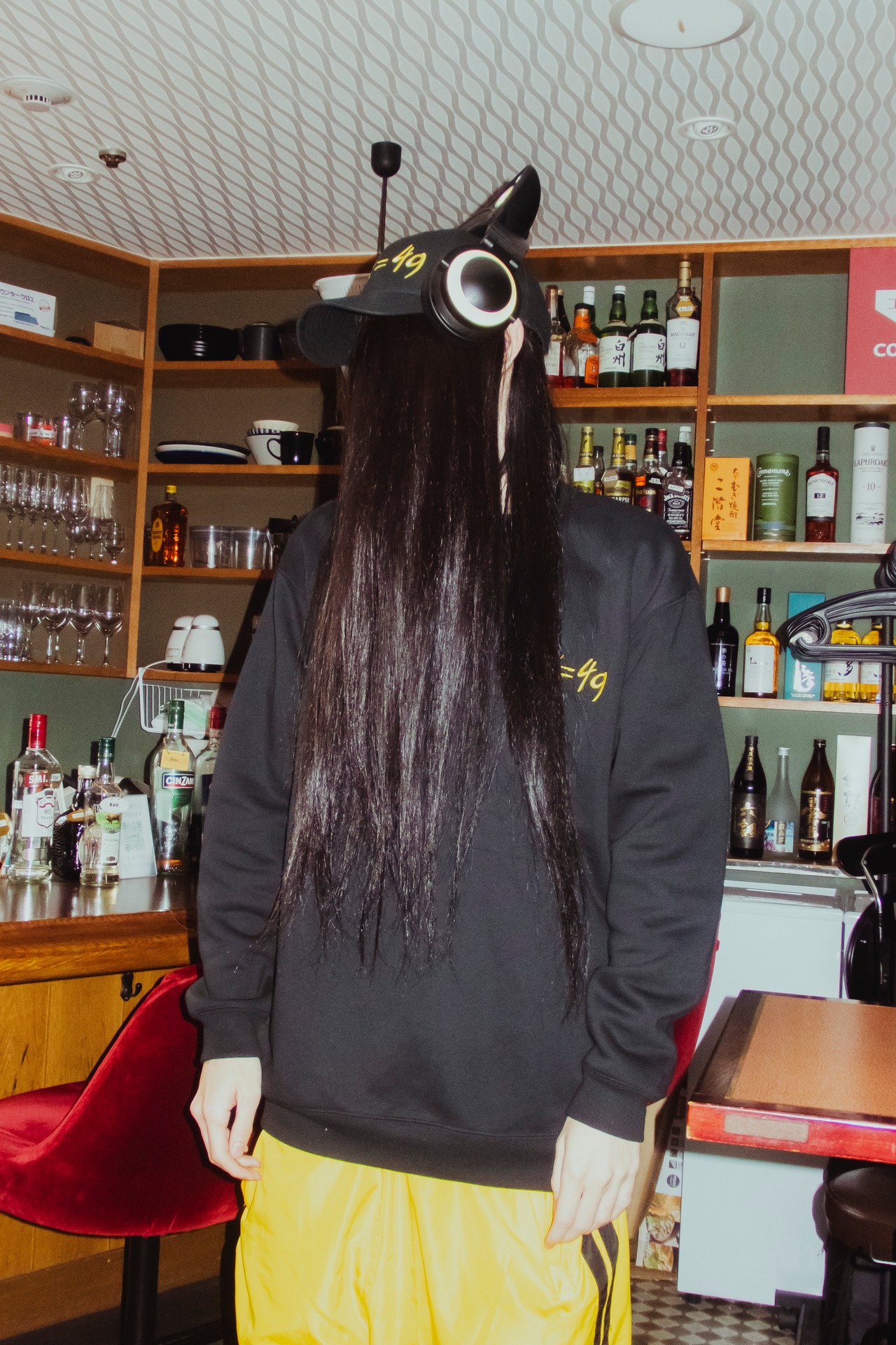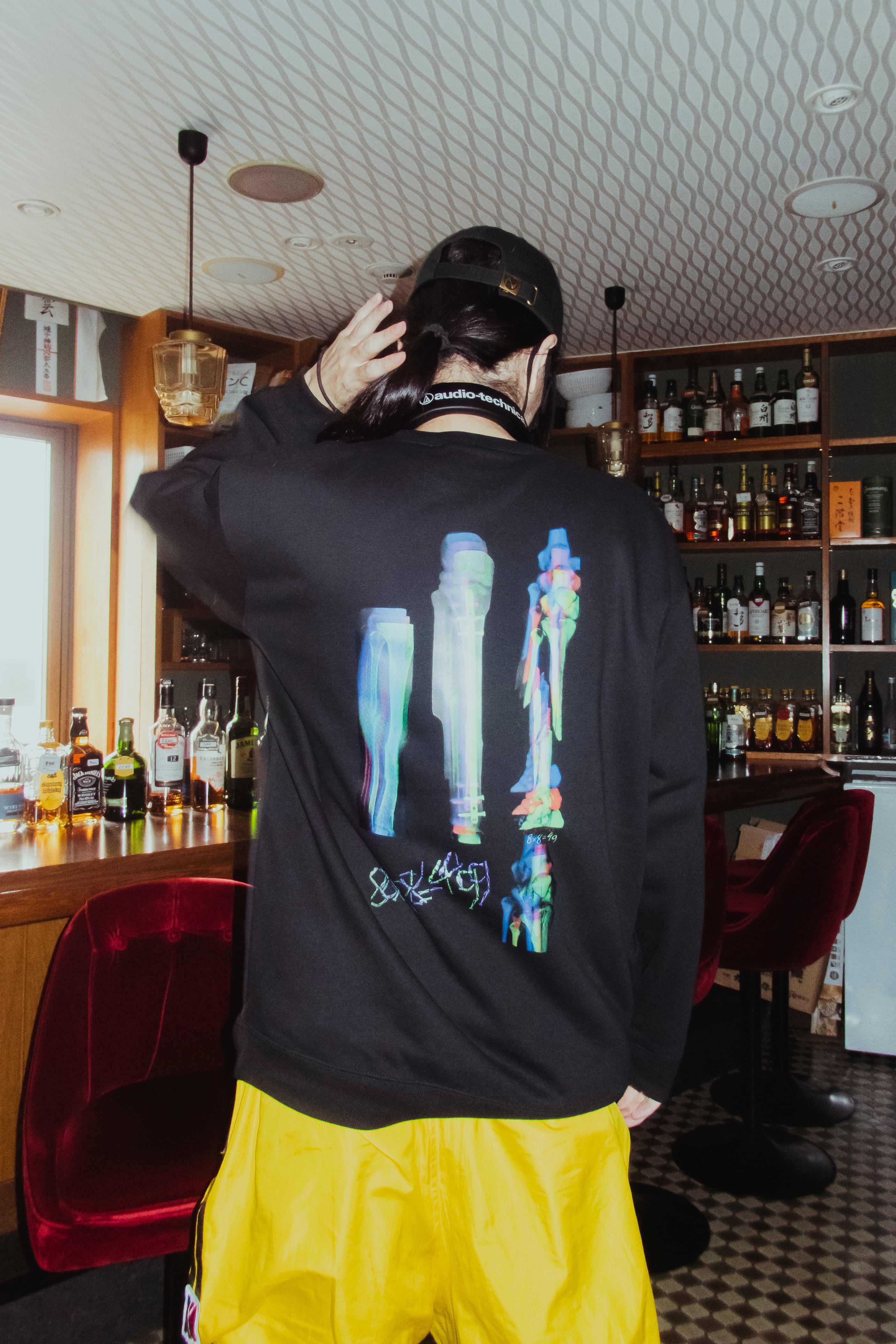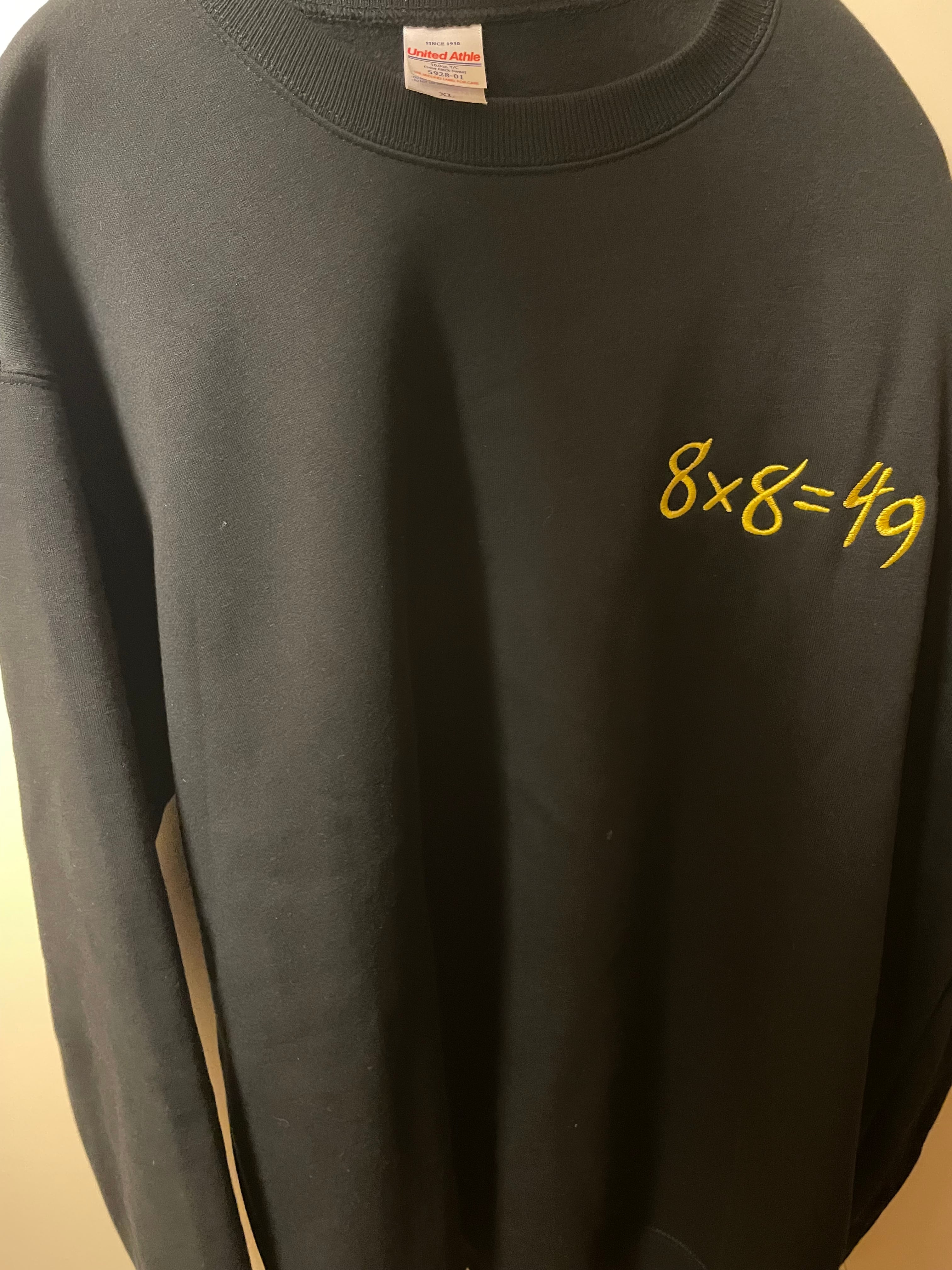※数量限定【8x8=49】スウェット(ボディ:ブラック フロント:イエロー刺繍 バック:全面プリント)